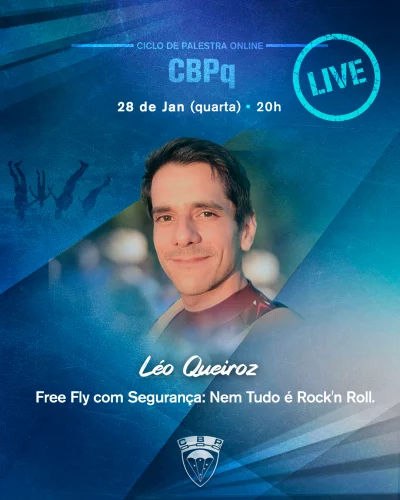 Ciclo de palestras online da CBPq, dia 28 de janeiro, próxima quarta, às 20h, com Léo Queiroz com o tema: Free Fly com Segurança: Nem tudo é Rock'n Roll. Transmissão pelo canal: youtube.com/@cbpq. Por um paraquedismo cada vez mais seguro! 🪂🎥 #uniaoecrescimento #livecbpq #ciclodepalestras #cbpq #leoqueiroz