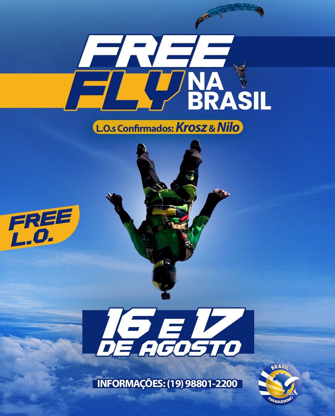 Vem aí o Campeonato Brasileiro de Paraquedismo 2025, de 20 a 27 de Julho. MODALIDADES: FQL, Freefly, Freestyle, Wingsuit, Swoop e Clássico. Competição é evolução e crescimento do esporte!!! ORGANIZAÇÃO CBPQ: WhatsApp: 15-99846.0088 e 15-99862-4400