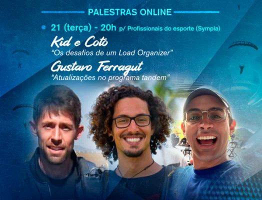 Em comemoração ao Dia do Paraquedista, em 22 de Outubro, a Confederação Brasileira de Paraquedismo realiza 3 lives especiais, nos dias 21, 22 e 23, sempre às 20h. Direcionadas aos Profissionais do esporte (nos dias 21 e 23, pelo Sympla) e para todos os atletas (no dia 22, pelo YouTube), com palestras online voltadas à segurança e atualizações. Confira a programação completa: